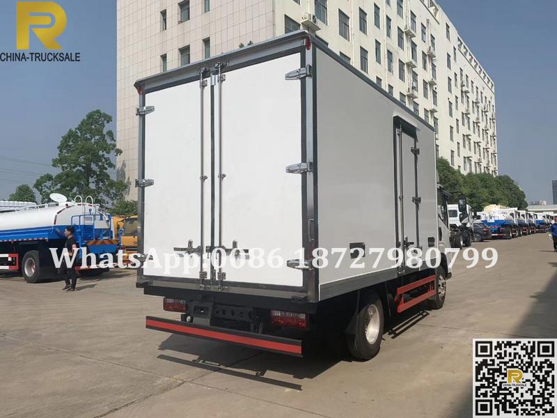 1. -15°C good refrigerator units ,You can also choose the specific brand (such as THERMO KING, CARRIER,etc) 2. 800mm thickness Glass fiber reinforced plastics and polyurethane elastomer container body, thermal insulation effect is very good. 3. Equipped with rear door . We are professional to do the refrigerator trucks, absolutely guarantee the quality of products and the effect of cold storage . |